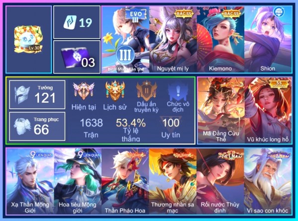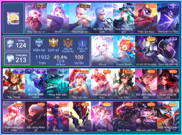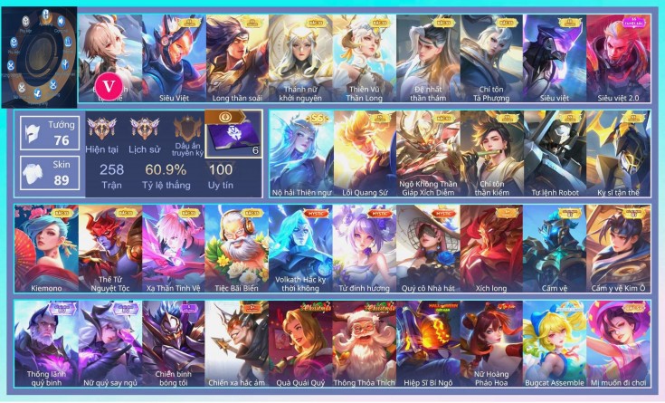 BÁN ACC LIÊN QUÂN SIÊU VIP - SKIN SS HỮU HẠN NHIỀU TƯỚNG TRÊN 500K