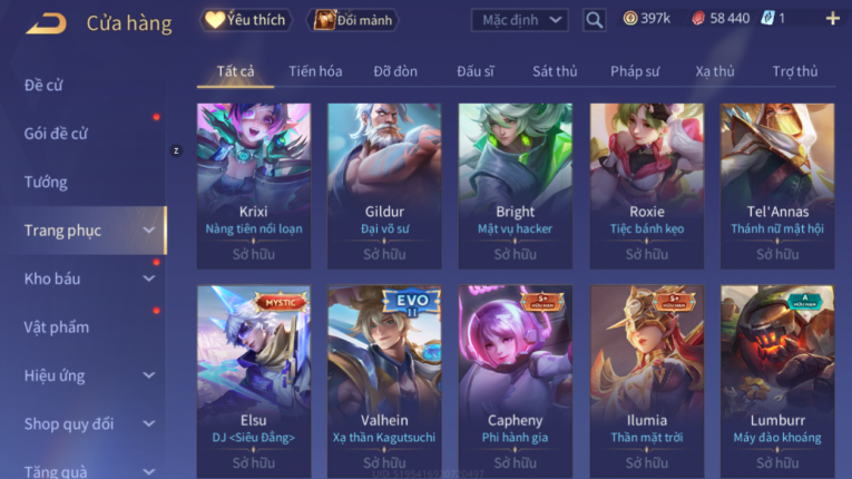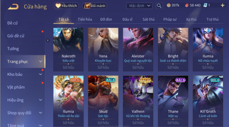 BÁN ACC LIÊN QUÂN SIÊU VIP - SKIN SS HỮU HẠN NHIỀU TƯỚNG TRÊN 500K