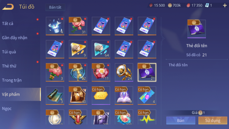 3 SS, 21 thẻ đổi tên, ngọc 90