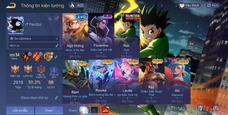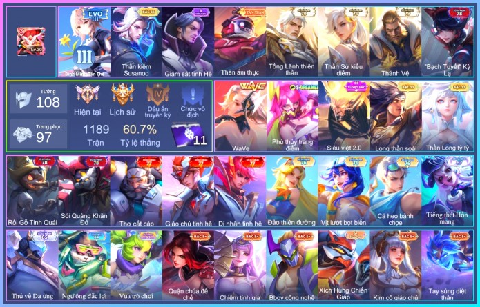 BÁN ACC LIÊN QUÂN SIÊU VIP - SKIN SS HỮU HẠN NHIỀU TƯỚNG TRÊN 500K