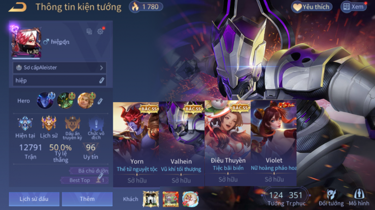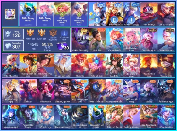 BÁN ACC LIÊN QUÂN SIÊU VIP - SKIN SS HỮU HẠN NHIỀU TƯỚNG TRÊN 500K