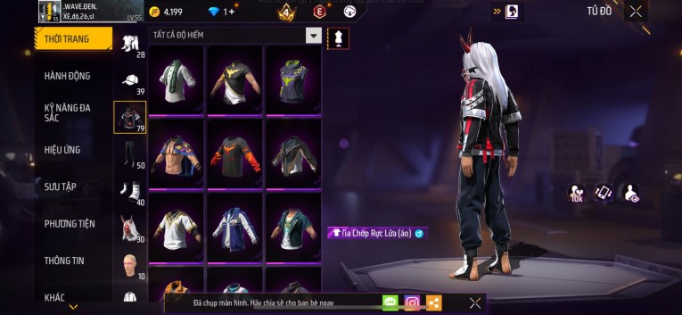 Acc chơi lâu, nhiều skin súng xịn, đầy đủ áo và phụ kiện nam. Đồ đủ dùng, đẹp mắt – vào chơi là chiến ngay!