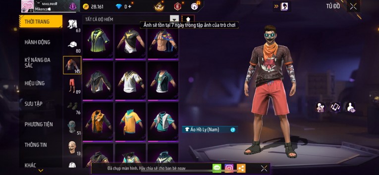 Acc chơi lâu, nhiều skin súng xịn, đầy đủ áo và phụ kiện nam. Đồ đủ dùng, đẹp mắt – vào chơi là chiến ngay! Phù hợp anh em thích skin đẹp, súng mạnh, acc ổn định.