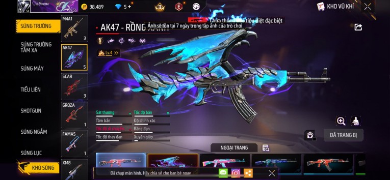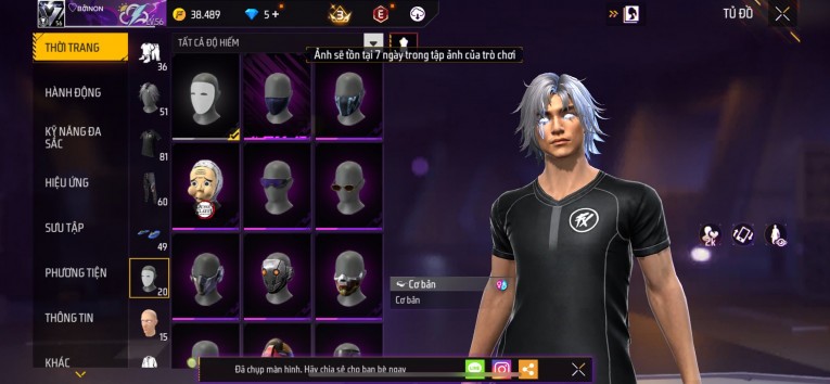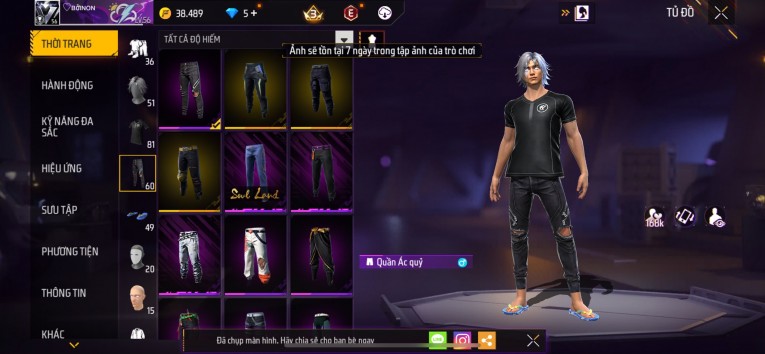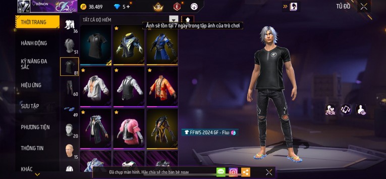 nổi bật: Acc chơi lâu, nhiều skin súng xịn, đầy đủ áo và phụ kiện nam. Đồ đủ dùng, đẹp mắt – vào chơi là chiến ngay! Phù hợp anh em thích skin đẹp, súng mạnh, acc ổn định.