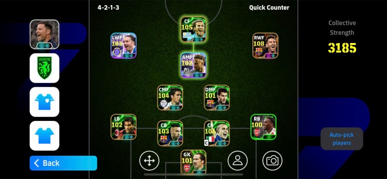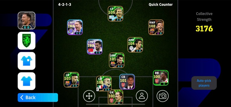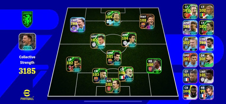 Messi bigtime 108, Raul 104, Jack Grealish 103, Forlan 105, Pep 101, Berbatov 103, Torres 102, Seaman 101, Hazard 102, Neymar showtime 102, Serginho 102, .....+2 HLV