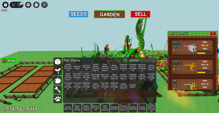Pet: petal bee ( age 35 ) , honey bee ( age 35 )