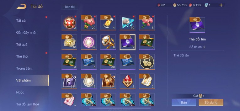 2 thẻ đổi tên, 2 đá quý, ngọc 90