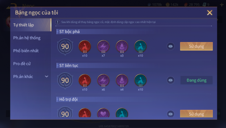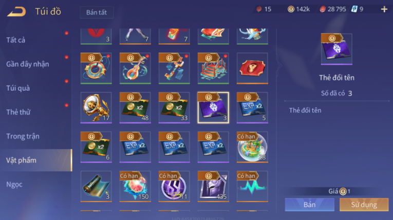 liliana SS, 3 thẻ đổi tên, ngọc 90