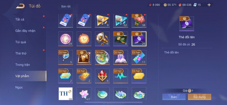 2 SS, butterfly lv3, 26 thẻ đổi tên, 6 đá quý, ngọc 90