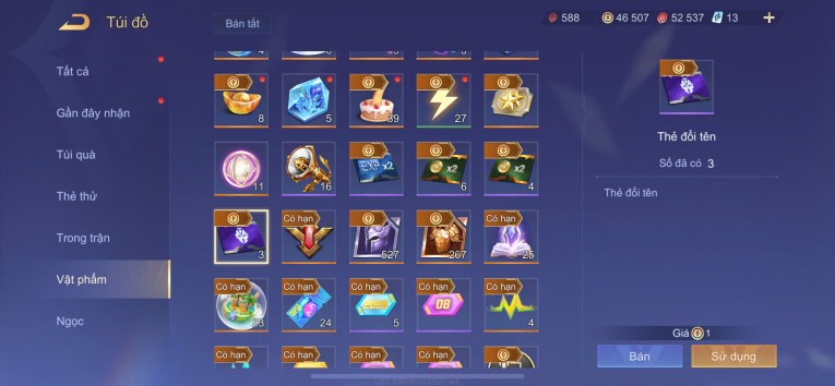 2 SS. flo tinh hệ, 3 thẻ đổi tên, ngọc 90