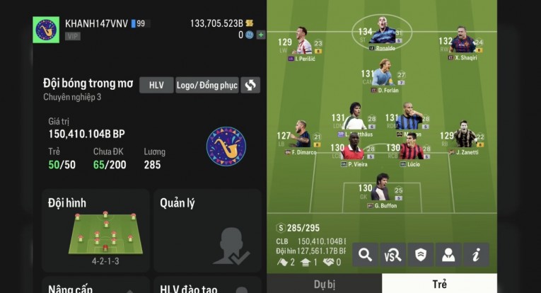 Giá Trị Đội Hình: INTER MILAN KÈM 133K BP TRẮNG