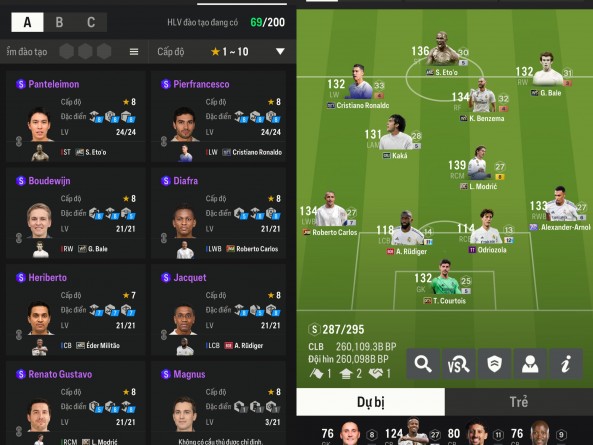 Giá Trị Đội Hình: REAL HẬU VỆ THẺ +11 +12 HLV XỊN XÒ
