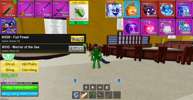 nổi bật: hắc kiếm yoru, 1 trái vv , 1 gamepass , trái topaz diamond , 2 trái đỏ , shark v3 human v3