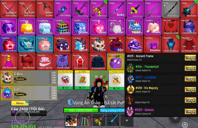 nổi bật: Gas + t-rex vĩnh viễn, 5 tộc v4 , 3 gamepass, nhiều vật phẩm ngon khác , Lưu Ý Không Gỡ Bảo Mật(Gỡ = Không Bảo Kê)