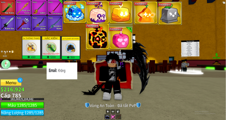 Tất cả acc đều đăng nhập đổi mật khẩu ngay, cam kết nick sạch – không khóa – không gian lận, hỗ trợ nhiệt tình nếu phát sinh vấn đề. Shop luôn cập nhật acc mới mỗi ngày, đảm bảo uy tín – an toàn – tiện lợi cho khách hàng mua acc Blox Fruits.