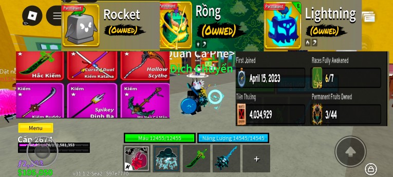 BÁN ACC ROBLOX BLOXFRUITS GIÁ TRÊN 500K HÀNG VIP