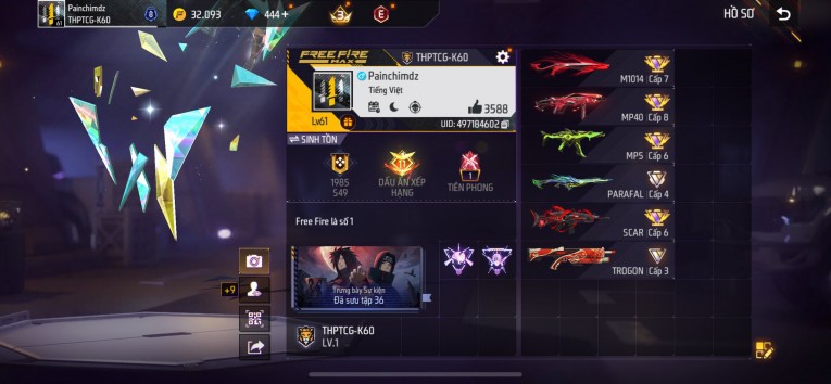 BÁN ACC FREEFIRE SIÊU PHẨM - VIP 8 GIÁ TRÊN 1 TRIỆU