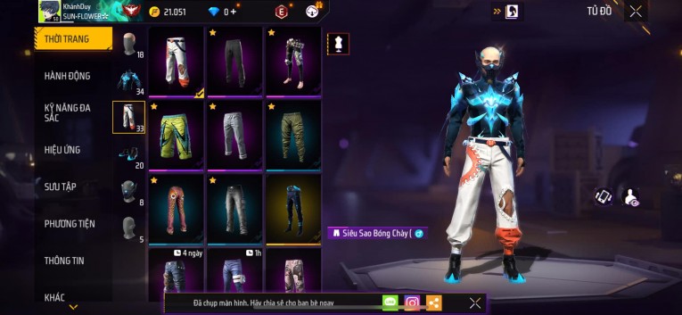Acc chơi lâu, nhiều skin súng xịn, đầy đủ áo và phụ kiện nam. Đồ đủ dùng, đẹp mắt – vào chơi là chiến ngay!