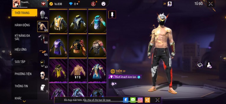 Acc siêu phẩmchơi lâu, nhiều skin súng xịn, đầy đủ áo và phụ kiện nam. Đồ đủ dùng, đẹp mắt – vào chơi là chiến ngay!