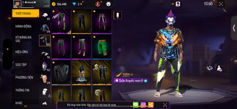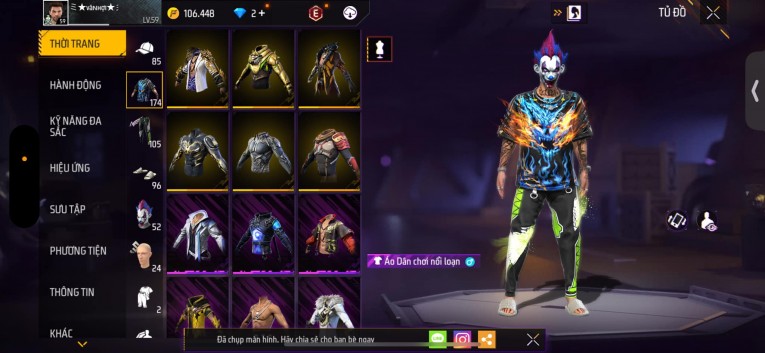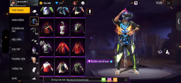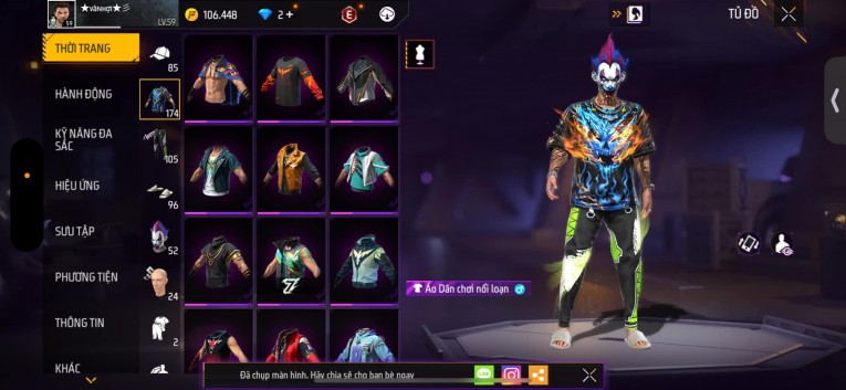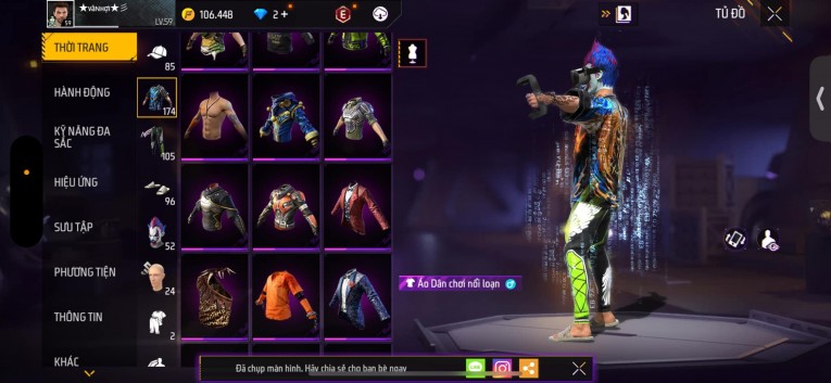 Acc chơi lâu, nhiều skin súng xịn, đầy đủ áo và phụ kiện nam. Đồ đủ dùng, đẹp mắt – vào chơi là chiến ngay!