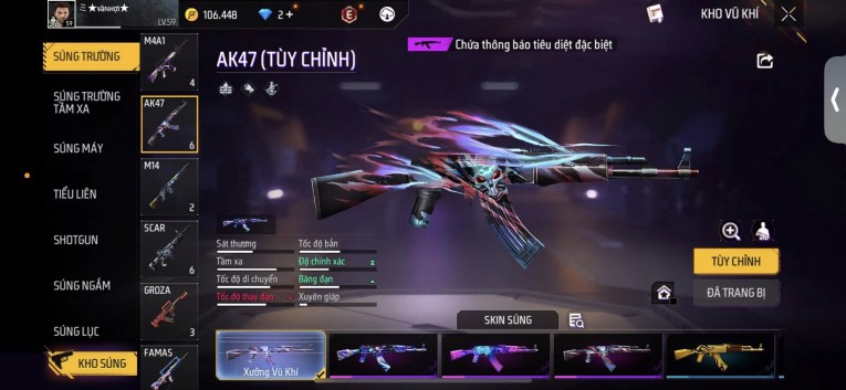 Phù hợp anh em thích skin đẹp, súng mạnh, acc ổn định.