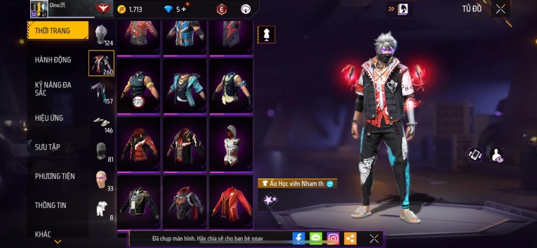 Acc chơi lâu, nhiều skin súng xịn, đầy đủ áo và phụ kiện nam. Đồ đủ dùng, đẹp mắt – vào chơi là chiến ngay!