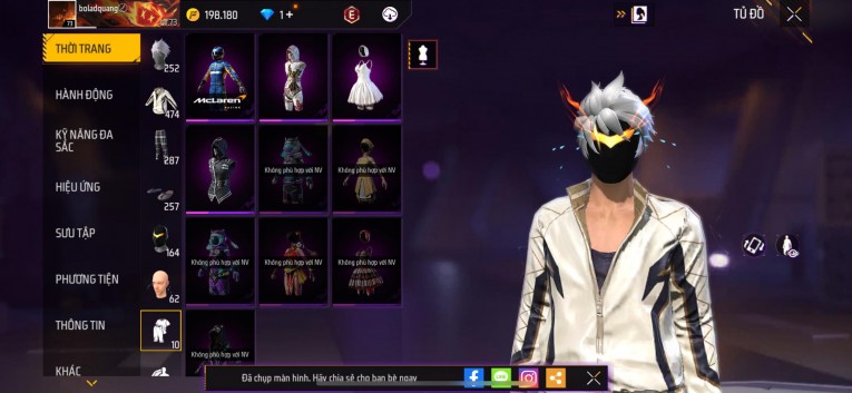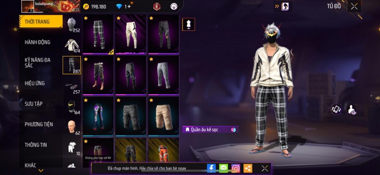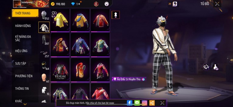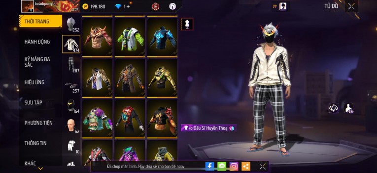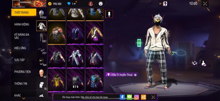 Acc chơi lâu, nhiều skin súng xịn, đầy đủ áo và phụ kiện nam. Đồ đủ dùng, đẹp mắt – vào chơi là chiến ngay!