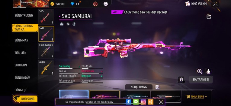 Phù hợp anh em thích skin đẹp, súng mạnh, acc ổn định.