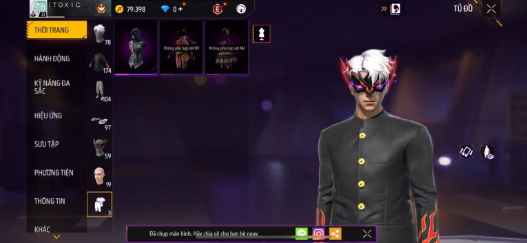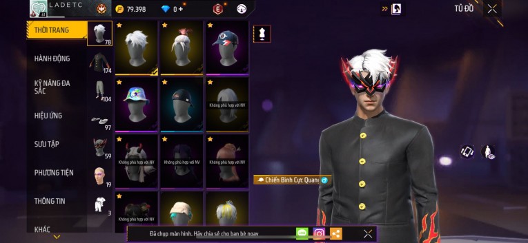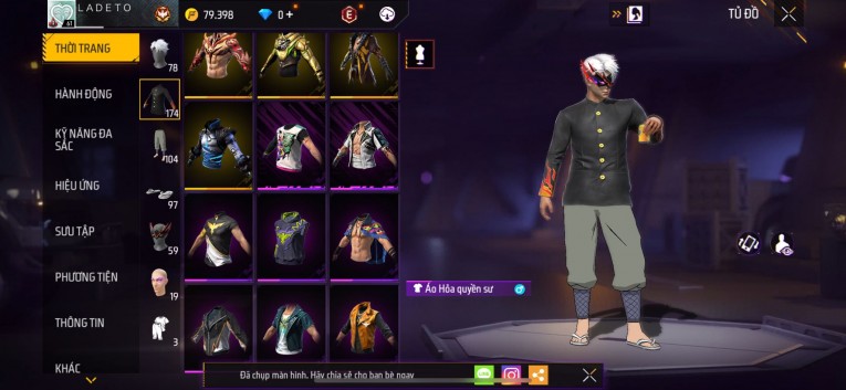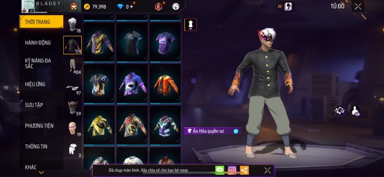 Acc chơi lâu, nhiều skin súng xịn, đầy đủ áo và phụ kiện nam. Đồ đủ dùng, đẹp mắt – vào chơi là chiến ngay!