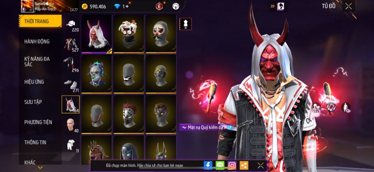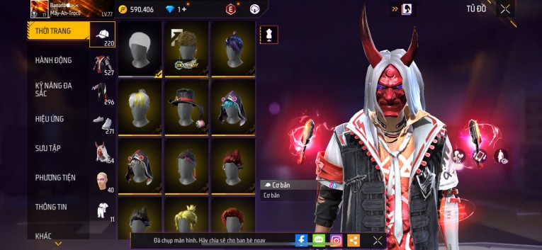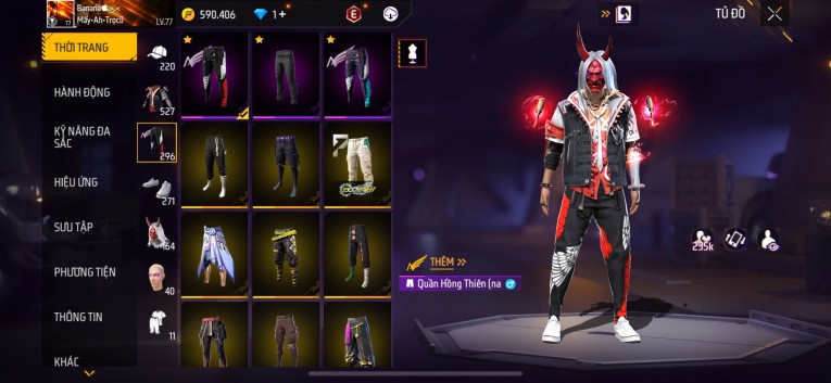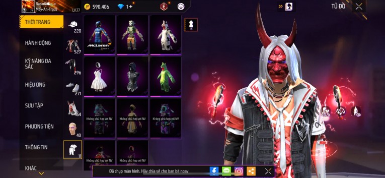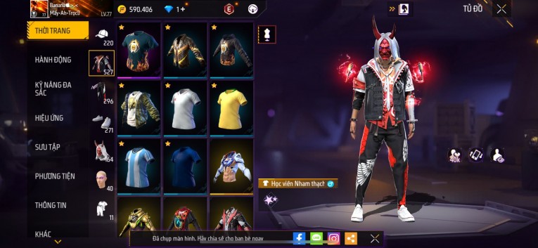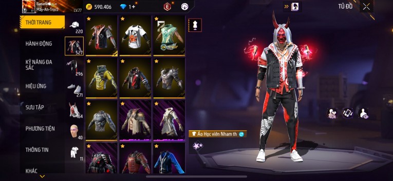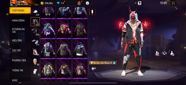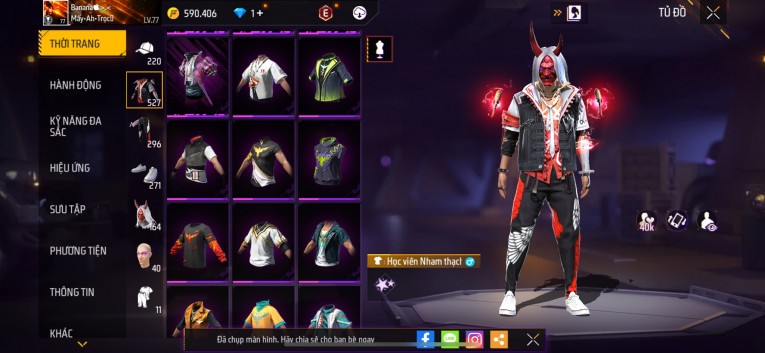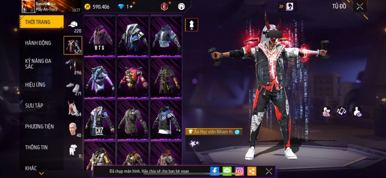 nổi bật: Acc chơi lâu, nhiều skin súng xịn, đầy đủ áo và phụ kiện nam. Đồ đủ dùng, đẹp mắt – vào chơi là chiến ngay! Phù hợp anh em thích skin đẹp, súng mạnh, acc ổn định.