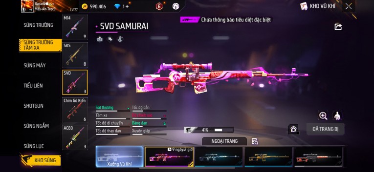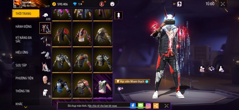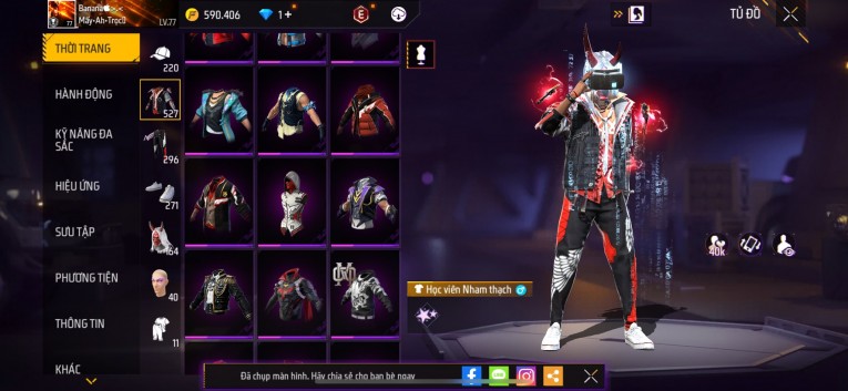 Acc chơi lâu, nhiều skin súng xịn, đầy đủ áo và phụ kiện nam. Đồ đủ dùng, đẹp mắt – vào chơi là chiến ngay! Phù hợp anh em thích skin đẹp, súng mạnh, acc ổn định.