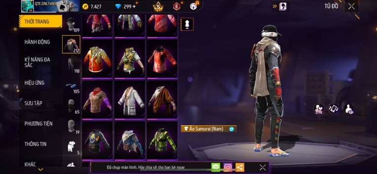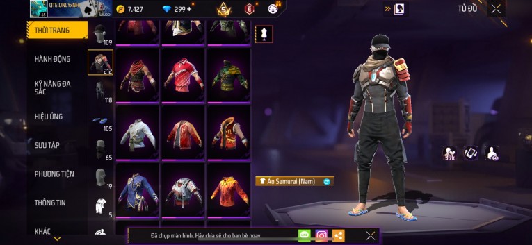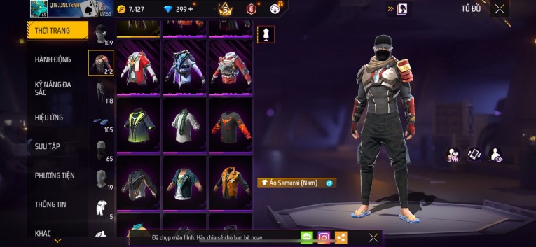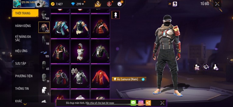 Acc chơi lâu, nhiều skin súng xịn, đầy đủ áo và phụ kiện nam. Đồ đủ dùng, đẹp mắt – vào chơi là chiến ngay!