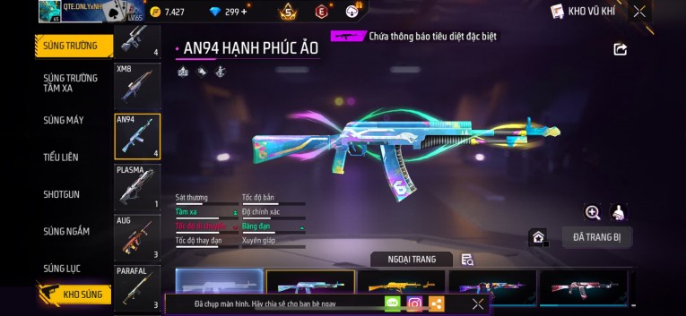 Phù hợp anh em thích skin đẹp, súng mạnh, acc ổn định.