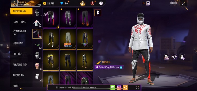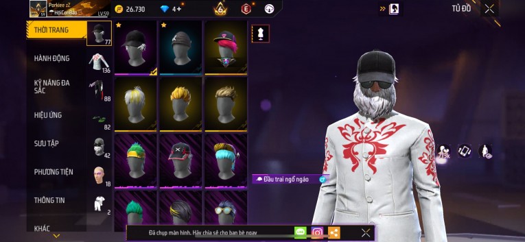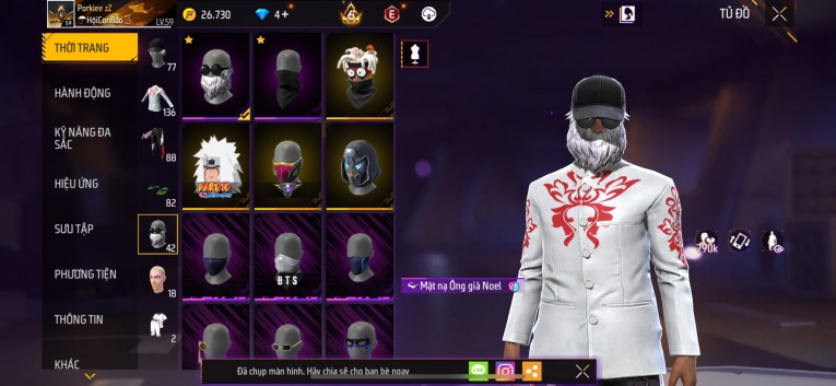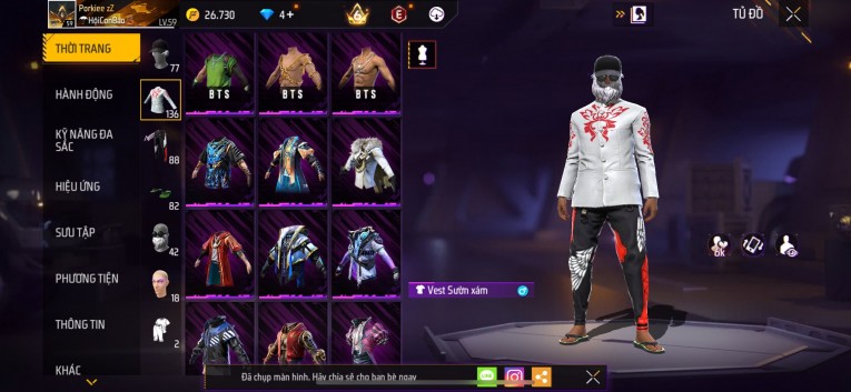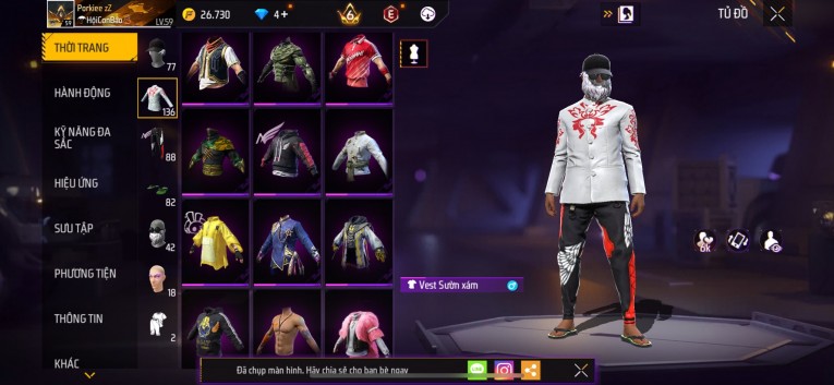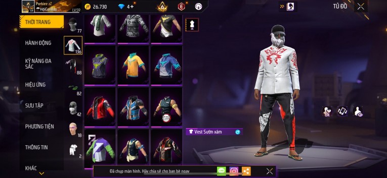 Acc chơi lâu, nhiều skin súng xịn, đầy đủ áo và phụ kiện nam. Đồ đủ dùng, đẹp mắt – vào chơi là chiến ngay!