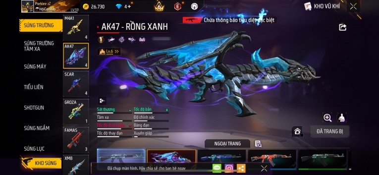 Phù hợp anh em thích skin đẹp, súng mạnh, acc ổn định.