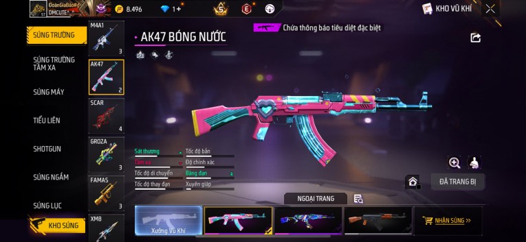 Phù hợp anh em thích skin đẹp, súng mạnh, acc ổn định.