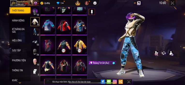 Acc chơi lâu, nhiều skin súng xịn, đầy đủ áo và phụ kiện nam. Đồ đủ dùng, đẹp mắt – vào chơi là chiến ngay!