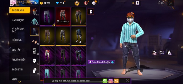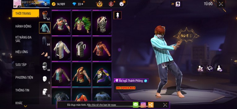 Acc chơi lâu, nhiều skin súng xịn, đầy đủ áo và phụ kiện nam. Đồ đủ dùng, đẹp mắt – vào chơi là chiến ngay!