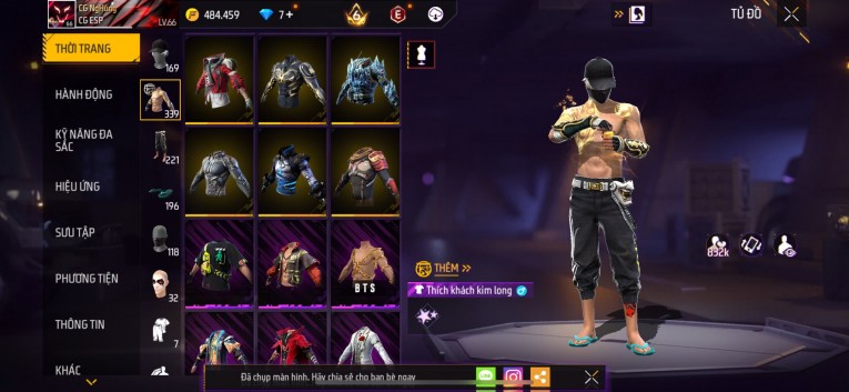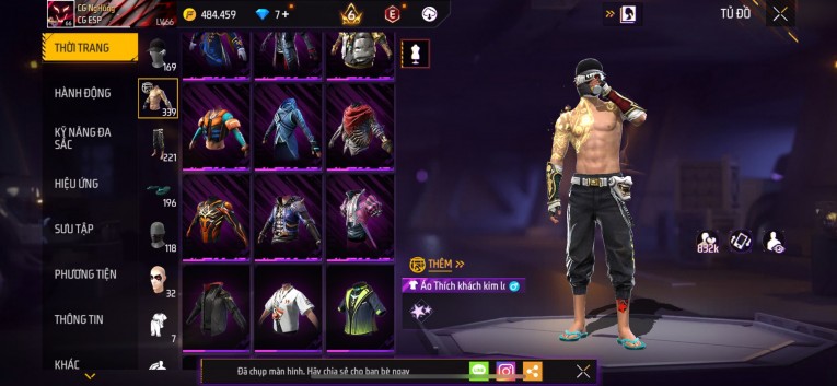 Acc chơi lâu, nhiều skin súng xịn, đầy đủ áo và phụ kiện nam. Đồ đủ dùng, đẹp mắt – vào chơi là chiến ngay!