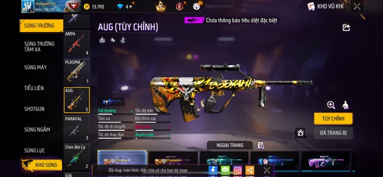 Phù hợp anh em thích skin đẹp, súng mạnh, acc ổn định.