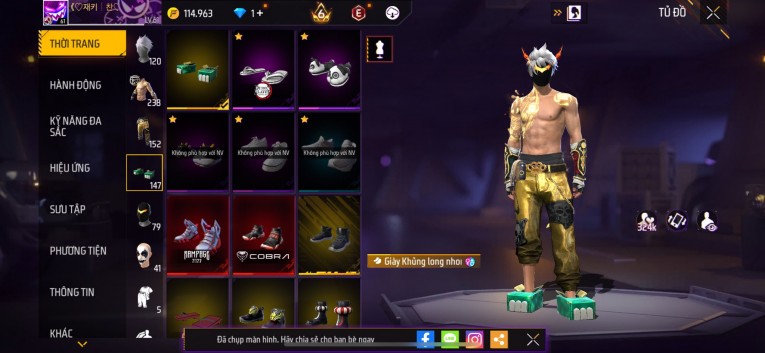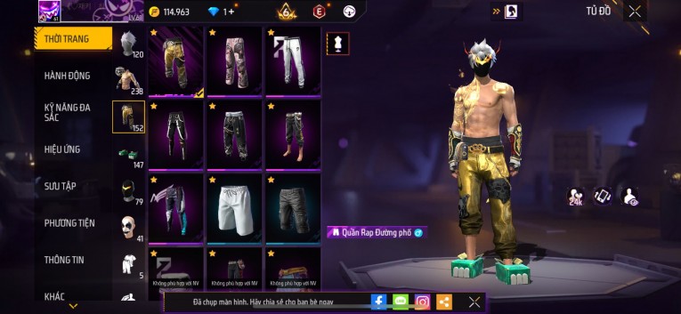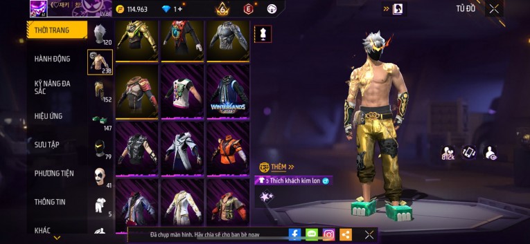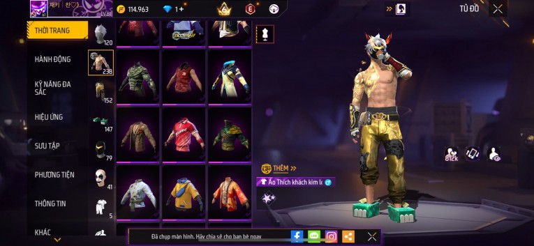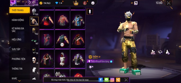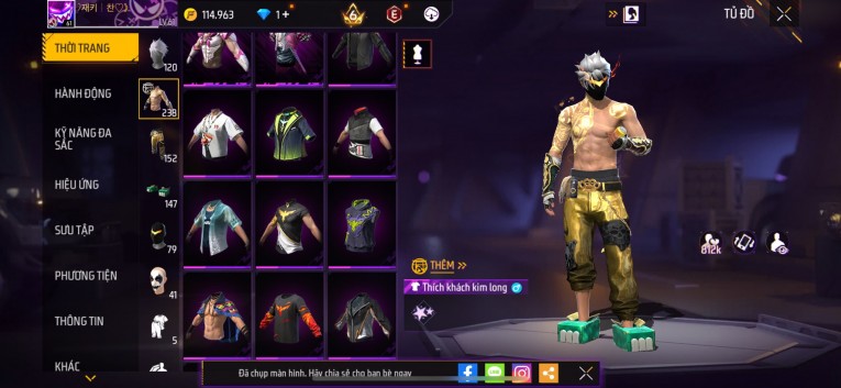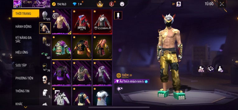 Acc chơi lâu, nhiều skin súng xịn, đầy đủ áo và phụ kiện nam. Đồ đủ dùng, đẹp mắt – vào chơi là chiến ngay!