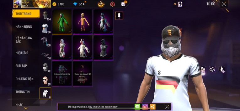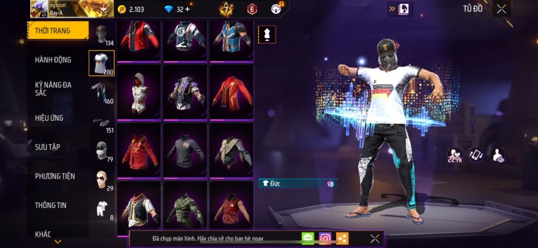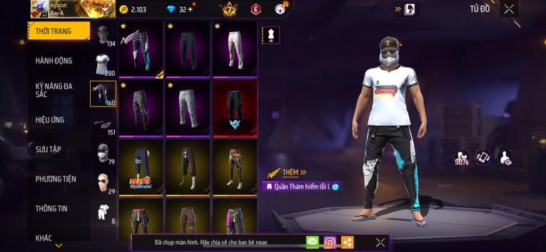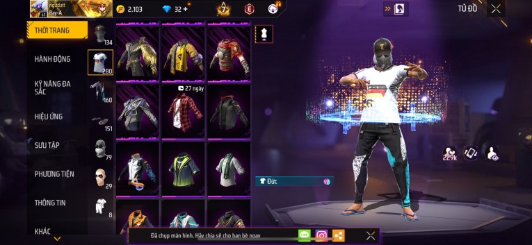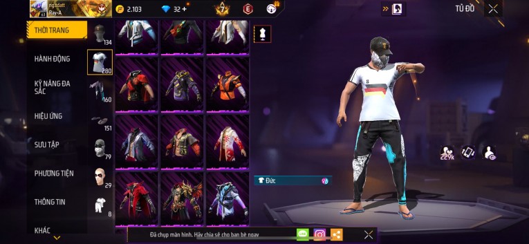 Acc chơi lâu, nhiều skin súng xịn, đầy đủ áo và phụ kiện nam. Đồ đủ dùng, đẹp mắt – vào chơi là chiến ngay!