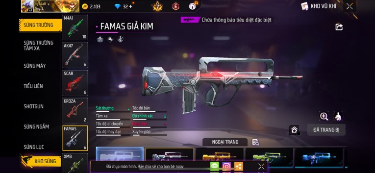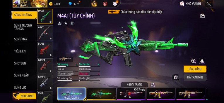 Phù hợp anh em thích skin đẹp, súng mạnh, acc ổn định.