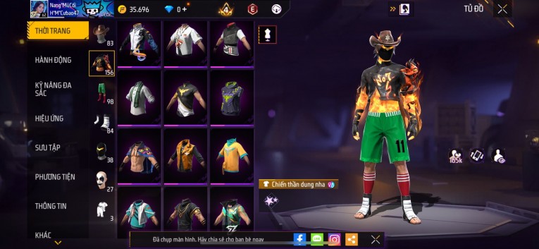 Acc chơi lâu, nhiều skin súng xịn, đầy đủ áo và phụ kiện nam. Đồ đủ dùng, đẹp mắt – vào chơi là chiến ngay!