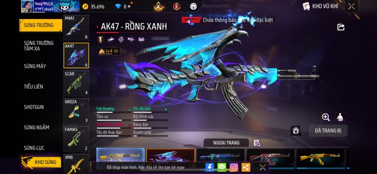 Phù hợp anh em thích skin đẹp, súng mạnh, acc ổn định.