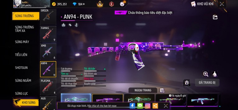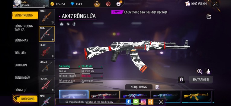 Phù hợp anh em thích skin đẹp, súng mạnh, acc ổn định.