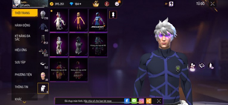 Acc chơi lâu, nhiều skin súng xịn, đầy đủ áo và phụ kiện nam. Đồ đủ dùng, đẹp mắt – vào chơi là chiến ngay!