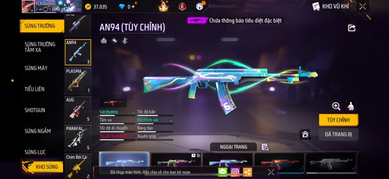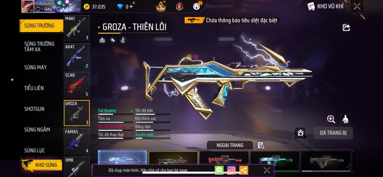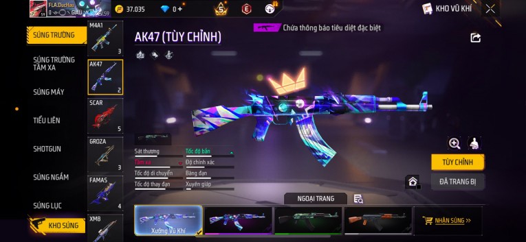 Phù hợp anh em thích skin đẹp, súng mạnh, acc ổn định.