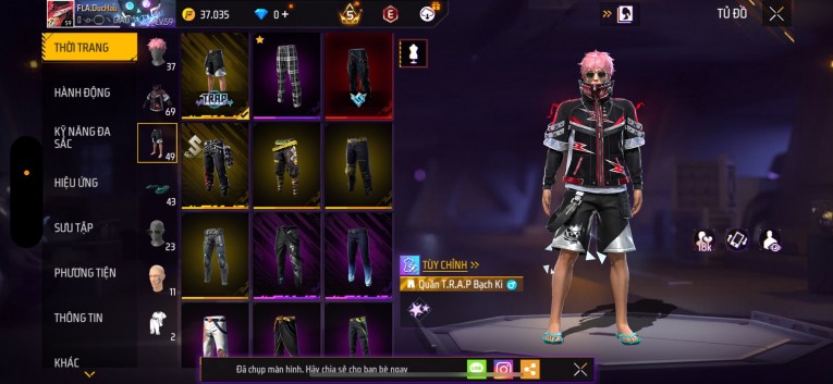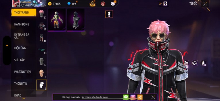 Acc chơi lâu, nhiều skin súng xịn, đầy đủ áo và phụ kiện nam. Đồ đủ dùng, đẹp mắt – vào chơi là chiến ngay!