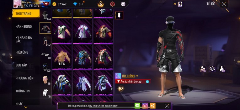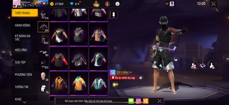 Acc chơi lâu, nhiều skin súng xịn, đầy đủ áo và phụ kiện nam. Đồ đủ dùng, đẹp mắt – vào chơi là chiến ngay!